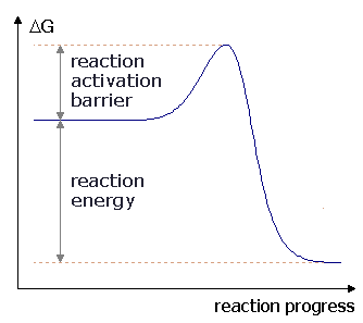 At this point, we have only observed the dependence of reaction rates on concentration of reactants and on temperature, and we have fit these data to equations called rate laws. Although this is very convenient, it does not provide us insight into why a particular reaction has a specific rate law or why the temperature dependence should obey equation 17. Nor does it provide any physical insights into the order of the reaction or the meaning of the constants a and b in equation 17. We begin by asking why the reaction rate should depend on the concentration of the reactants. To answer this, we consider a simple reaction between two molecules in which atoms are transferred between the molecules during the reaction. For example, a reaction important in the decomposition of ozone O3 by aerosols is O3(g)+Cl(g) The rate of collisions depends on the concentrations of the reactants, since the more molecules there are in a confined space, the more likely they are to run into each other. To write this relationship in an equation, we can think in terms of probability, and we consider the reaction above. The probability for an O3 molecule to be near a specific point increases with the number of O3 molecules, and therefore increases with the concentration of O3 molecules. The probability for a Cl atom to be near that specific point is also proportional to the concentration of Cl atoms. Therefore, the probability for an O3 molecule and a Cl atom to be in close proximity to the same specific point at the same time is proportional to the [O3] times [Cl]. It is important to remember that not all collisions between O3 molecules and Cl atoms will result in a reaction. There are other factors to consider including how the molecules approach one another. The atoms may not be positioned properly to exchange between molecules, in which case the molecules will simply bounce off of one another without reacting. For example, if the Cl atom approaches the center O atom of the O3 molecule, that O atom will not transfer. Another factor is energy associated with the reaction. Clearly, though, a collision must occur for the reaction to occur, and therefore there rate of the reaction can be no faster than the rate of collisions between the reactant molecules. Therefore, we can say that, in a bimolecular reaction, where two molecules collide and react, the rate of the reaction will be proportional to the product of the concentrations of the reactants. For the reaction of O3 with Cl, the rate must therefore be proportional to [O3][Cl], and we observe this in the experimental rate law in table 4. Thus, it appears that we can understand the rate law by understanding the collisions which must occur for the reaction to take place. We also need our model to account for the temperature dependence of the rate constant. As noted at the end of the last section, the temperature dependence of the rate constant in equation 17 is the same as the temperature dependence of the equilibrium constant for an endothermic reaction. This suggests that the temperature dependence is due to an energetic factor required for the reaction to occur. However, we find experimentally that equation 17 describes the rate constant temperature dependence regardless of whether the reaction is endothermic or exothermic. Therefore, whatever the energetic factor is that is required for the reaction to occur, it is not just the endothermicity of the reaction. It must be that all reactions, regardless of the overall change in energy, require energy to occur. A model to account for this is the concept of activation energy. For a reaction to occur, at least some bonds in the reactant molecule must be broken, so that atoms can rearrange and new bonds can be created. At the time of collision, bonds are stretched and broken as new bonds are made. Breaking these bonds and rearranging the atoms during the collision requires the input of energy. The minimum amount of energy required for the reaction to occur is called the activation energy, Ea. This is illustrated in figure 8, showing conceptually how the energy of the reactants varies as the reaction proceeds. In subfigure 8.1, the energy is low early in the reaction, when the molecules are still arranged as reactants. As the molecules approach and begin to rearrange, the energy rises sharply, rising to a maximum in the middle of the reaction. This sharp rise in energy is the activation energy, as illustrated. After the middle of the reaction has passed and the molecules are arranged more as products than reactants, the energy begins to fall again. However, the energy does not fall to its original value, so this is an endothermic reaction. Subfigure 8.2 shows the analogous situation for an exothermic reaction. Again, as the reactants approach one another, the energy rises as the atoms begin to rearrange. At the middle of the collision, the energy maximizes and then falls as the product molecules form. In an exothermic reaction, the product energy is lower than the reactant energy. Figure 8 thus shows that an energy barrier must be surmounted for the reaction to occur, regardless of whether the energy of the products is greater than (subfigure 8.1) or less than (subfigure 8.2) the energy of the reactants. This barrier accounts for the temperature dependence of the reaction rate. We know from the kinetic molecular theory that as temperature increases the average energy of the molecules in a sample increases. Therefore, as temperature increases, the fraction of molecules with sufficient energy to surmount the reaction activation barrier increases.
