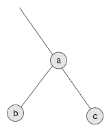 The new value is c. We can restore the heap property of this subtree by comparing c to a. If c is smaller, then the heap property is satisfied. If c is larger, then we swap c and a. The swap satisfies the heap property because we know that c must also be bigger than b, because c > a and a > b. Now that the subtree is reheapified, we can work our way up the tree until we reach the root.