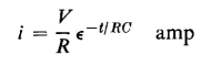 When a constant d-c voltage is applied to a capacitive circuit having a resistance R ohms in series with an ideal capacitance C f, the current is expressed by