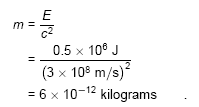 A rusting nailAn iron nail is left in a cup of water until it turns entirely to rust. The energy released is about 0.5 MJ. In theory, would a sufficiently precise scale register a change in mass? If so, how much? The energy will appear as heat, which will be lost to the environment. The total mass-energy of the cup, water, and iron will indeed be lessened by 0.5 MJ. (If it had been perfectly insulated, there would have been no change, since the heat energy would have been trapped in the cup.) The speed of light is c = 3×108 meters per second, so converting to mass units, we have