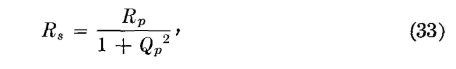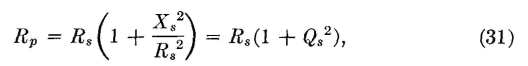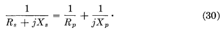 Equivalent Series and Parallel Circuits. A method of making impedance transformations is based on equivalent circuits.15 Two circuits are equivalent if they draw identical currents when they have the same voltage impressed on them. The current taken by the series circuit of Fig. 13 is Is = E/(Rs + jXs), and by the parallel circuit Ip = E/Rp + E/(jXp). If the circuits are equivalent, these two expressions can be equated: