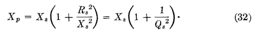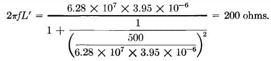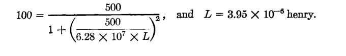 This is the value of the coil L to be connected in parallel with R to cause R' to equal 100 ohms. The equivalent series reactance of the L and R combination of Fig. 15(a) can be found by equation 34, and is