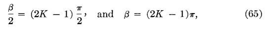 where K is any whole number. This relation must hold to give cosβ/2 = 0 values. When cos β/2 = 0 and sinβ/2 = ±1 are placed in equation 62, this becomes