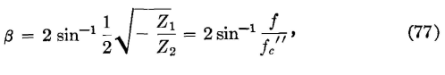 when the substitutions as in equation 76 are made. Thus, for the low-pass filter under consideration, and at 500 cycles, β = 2 sin-1 (500/1000) = 2 sin-1 0.5 = 60°. The dotted curve of Fig. 30 was