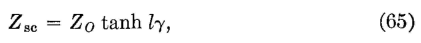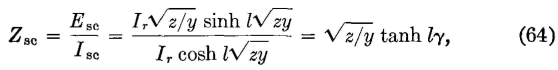 Input Impedance of Any Short-Circuited LineThe driving-point, or input, impedance of any such line or cable can be found by letting Z, of equation 58 be zero, or by the following method. No voltage can exist across a short circuit, and thus, for the short-circuited condition, Er = 0 in equations 23 and 24. It follows that