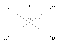 The center of gravity G as well as the center of the circumcircle lie at the intersection of the diagonals. Note that a rectangle does not have an incircle. For a square the center of the incircle lies at the intersection of the diagonals, too.