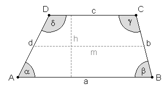 The central median m is equal to (a+c)/2. The area of the trapezoid can be calculated by A = h