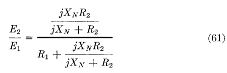 Equation 62 holds for any values of R1, R2, and XN whatsoever, but there are three cases that deserve particular attention: (a) R2 = R1; (b) R2 = 2R1; and (c) R2 = ∞. Of these, (a) corresponds to the usual line-matching transformer with the source and load impedances equal; (b) is often recommended for maximum undistorted output of triodes; (c) is realized practically when the load is the grid of a class A amplifier. For these cases, equation 62 becomes