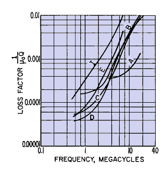 Losses in ferrites are often related to the product μ0Q. (See Fig. 165.)