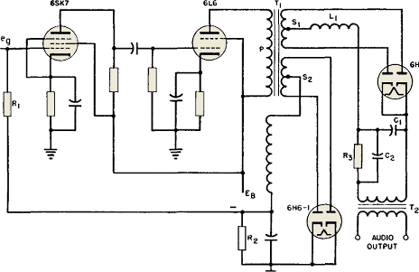 Demodulation is accomplished in the circuit of Fig. 201 by means of diode 6H6-2.