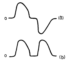 In Fig. 217 three single-phase circuits are diagrammed which comprise two of the half-wave elements described in the preceding sections. These circuits are discussed briefly below. (a) Doublet Circuit. This is really two half-wave circuits working into a common load. Rectifier polarities are such as to cause a-c voltage to appear across the load, as in Fig. 218(a).