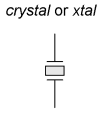 This technique is a popular one for amateur radio operators (or at least it was before the advent of inexpensive digital frequency instruments called counters), especially because it doesn't require direct connection to the circuit. So long as the inductor and/or capacitor can intercept enough stray field (magnetic or electric, respectively) from the circuit under test to cause the meter to indicate, it will work. wheatstone bridgeIn frequency as in other types of electrical measurement, the most accurate means of measurement are usually those where an unknown quantity is compared against a known standard, the basic instrument doing nothing more than indicating when the two quantities are equal to each other. This is the basic principle behind the DC (Wheatstone) bridge circuit and it is a sound metrological principle applied throughout the sciences. If we have access to an accurate frequency standard (a source of AC voltage holding very precisely to a single frequency), then measurement of any unknown frequency by comparison should be relatively easy. crystal quartz crystal piezoelectricityFor that frequency standard, we turn our attention back to the tuning fork, or at least a more modern variation of it called the quartz crystal. Quartz is a naturally occurring mineral possessing a very interesting property called piezoelectricity. Piezoelectric materials produce a voltage across their length when physically stressed, and will physically deform when an external voltage is applied across their lengths. This deformation is very, very slight in most cases, but it does exist. Quartz rock is elastic (springy) within that small range of bending which an external voltage would produce, which means that it will have a mechanical resonant frequency of its own capable of being manifested as an electrical voltage signal. In other words, if a chip of quartz is struck, it will "ring" with its own unique frequency determined by the length of the chip, and that resonant oscillation will produce an equivalent voltage across multiple points of the quartz chip which can be tapped into by wires fixed to the surface of the chip. In reciprocal manner, the quartz chip will tend to vibrate most when it is "excited" by an applied AC voltage at precisely the right frequency, just like the reeds on a vibrating-reed frequency meter. xtalChips of quartz rock can be precisely cut for desired resonant frequencies, and that chip mounted securely inside a protective shell with wires extending for connection to an external electric circuit. When packaged as such, the resulting device is simply called a crystal (or sometimes "xtal"), and its schematic symbol looks like this: