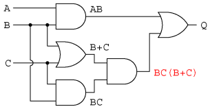 Finally, the output ("Q") is seen to be equal to the expression AB + BC(B + C):