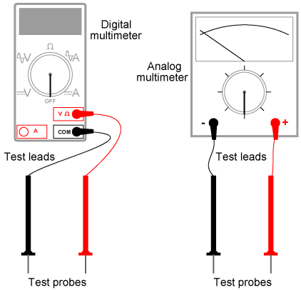 A multimeter is an electrical instrument capable of measuring voltage, current, and resistance. Digital multimeters have numerical displays, like digital clocks, for indicating the quantity of voltage, current, or resistance. Analog multimeters indicate these quantities by means of a moving pointer over a printed scale. Analog multimeters tend to be less expensive than digital multimeters, and more beneficial as learning tools for the first-time student of electricity. I strongly recommend purchasing an analog multimeter before purchasing a digital multimeter, but to eventually have both in your tool kit for these experiments.
