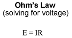 Finally, taking the measured figures for resistance and current, use the Ohm's Law equation to calculate circuit voltage. Compare this calculated figure with the measured figure for circuit voltage: