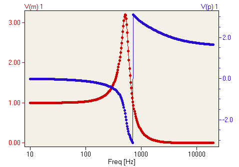 series resonant bandstop filter v1 1 0 ac 1 sin r1 1 2 500 l1 2 3 100m c1 3 0 10u rload 2 0 1k .ac lin 20 70 230 .plot ac v(2) .end
