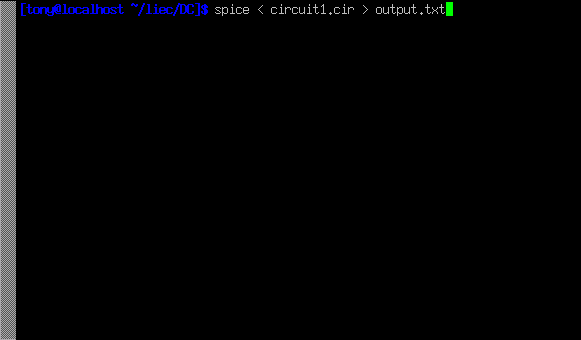 As soon as you press the [Enter] key to issue this command, text from SPICE's output should scroll by on the computer screen. Here is a screenshot showing what SPICE outputs on my computer (I've lengthened the "terminal" window to show you the full text. With a normal-size terminal, the text easily exceeds one page length):
