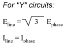 When we measure voltage and current in three-phase systems, we need to be specific as to where we're measuring. Line voltage refers to the amount of voltage measured between any two line conductors in a balanced three-phase system. With the above circuit, the line voltage is roughly 208 volts. Phase voltage refers to the voltage measured across any one component (source winding or load impedance) in a balanced three-phase source or load. For the circuit shown above, the phase voltage is 120 volts. The terms line current and phase current follow the same logic: the former referring to current through any one line conductor, and the latter to current through any one component. Y-connected sources and loads always have line voltages greater than phase voltages, and line currents equal to phase currents. If the Y-connected source or load is balanced, the line voltage will be equal to the phase voltage times the square root of 3: