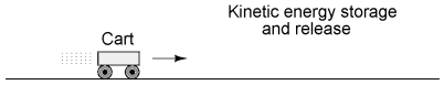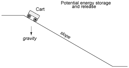 The cart, sitting at the top of a slope, possesses potential energy due to the influence of gravity and its elevated position on the hill. If we consider the cart's braking system to be analogous to the resistance of the system and the cart itself to be the capacitor, what resistance value would facilitate rapid release of that potential energy? Minimum resistance (no brakes) would diminish the cart's altitude quickest, of course! Without any braking action, the cart will freely roll downhill, thus expending that potential energy as it loses height. With maximum braking action (brakes firmly set), the cart will refuse to roll (or it will roll very slowly) and it will hold its potential energy for a long period of time. Likewise, a capacitive circuit will discharge rapidly if its resistance is low and discharge slowly if its resistance is high. Now let's consider a mechanical analogy for an inductor, showing its stored energy in kinetic form: