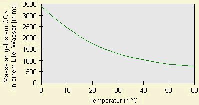 Sodawasser und LimonadenMit einem Trinkwassersprudler kann man Leitungswasser auch zu Hause mit CO2 versetzen. Man benötigt hierzu eine CO2-Patrone und es ist dabei wichtig, dass das Prickelwasser gekühlt wird. Denn erhitzt man kohlenstoffdioxidhaltige Getränke, so entwickeln sich Perlen und CO2 entweicht, da es in der Hitze schlechter löslich ist. So schmeckt zum Beispiel im Sommer warmes Cola langweilig, da nur noch wenig Kohlenstoffdioxid darin gelöst ist. "Verhalten" einer Coladose