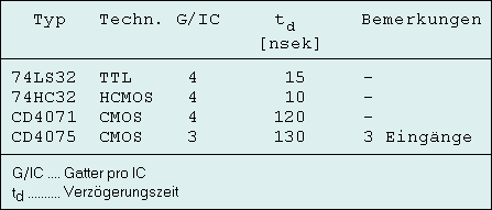 In der folgenden Tabelle sind ein paar ODER-Gatter aufgeführt.