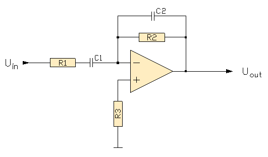 Legt man eine Spannung Uin an den Eingang der Schaltung, so fließt durch Rf der Ladestrom des Kondensators, der dem Differential der angelegten Spannung entspricht.