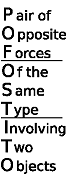 A mnemonic for using Newton's third law correctly Mnemonics are tricks for memorizing things. For instance, the musical notes that lie between the lines on the treble clef spell the word FACE, which is easy to remember. Many people use the mnemonic "SOHCAHTOA" to remember the definitions of the sine, cosine, and tangent in trigonometry. I have my own modest offering, POFOSTITO, which I hope will make it into the mnemonics hall of fame. It's a way to avoid some of the most common problems with applying Newton's third law correctly: