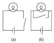 The figure shows two possible ways of wiring a flashlight with a switch. Both will serve to turn the bulb on and off, although the switch functions in the opposite sense. Why is the method shown in (a) preferable?