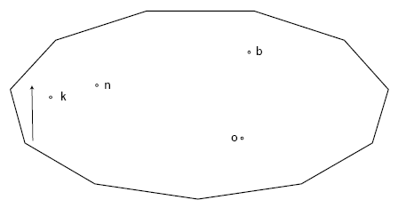 and draw in the normal at each place where the ray strikes a bumper. | |