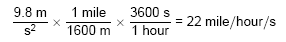 This is a figure that Americans will have an intuitive feel for. If your car has a forward acceleration equal to the acceleration of a falling object, then you will gain 22 miles per hour of speed every second. However, using mixed time units of hours and seconds like this is usually inconvenient for problem-solving. It would be like using units of foot-inches for area instead of ft2 or in2.