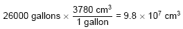 Water has a density of 1 gram per cubic centimeter, so the mass of the water is 9.8 × 107 g. One joule is sufficient to heat 0.24 g by 1 °C, so the energy needed to heat the swimming pool is