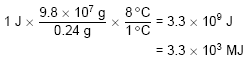 The cost of the electricity is (3.3 × 103 MJ)($0.039/MJ)=$130.