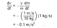 Rain falling into a moving cartIf 1 kg/s of rain falls vertically into a 10-kg cart that is rolling without friction at an initial speed of 1.0 m/s, what is the effect on the speed of the cart when the rain first starts falling? The rain and the cart make horizontal forces on each other, but there is no external horizontal force on the rain-plus-cart system, so the horizontal motion obeys