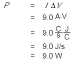 Question: If a 9.0-volt battery causes 1.0 A to flow through a alightbulb, how much power is dissipated? Solution: The voltage rating of a battery tells us what voltage edifference ΔV it is designed to maintain between its terminals.