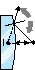 We now apply the method outlined above for determining the plus and minus signs. Step 1: The object is the point on the opposite wall. As an experiment, (b), we try making the object closer. I did these drawings using illustration software, but if you were doing them by hand, you'd want to make the scale much larger for greater accuracy. Also, although I did figures (a) and (b) as separate drawings in order to make them easier to understand, you're less likely to make a mistake if you do them on top of each other. The two angles at the mirror fan out from the normal. Increasing θo has clearly made θi larger as well. (All four angles got bigger.) There must be a cancellation of the effects of changing the two terms on the right in the same way, and the only way to get such a cancellation is if the two terms in the angle equation have opposite signs: θf = + θi - θo or θf = -θi + θo . Step 2: Now which is the positive term and which is negative? Since the image angle is bigger than the object angle, the angle equation must be θf = θi - θo , in order to give a positive result for the focal angle. The signs of the distance equation behave the same way: