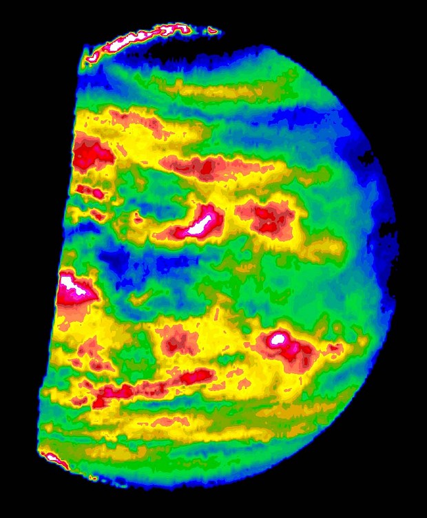 image shows the radiant heat from the lower atmosphere (about 400 degrees